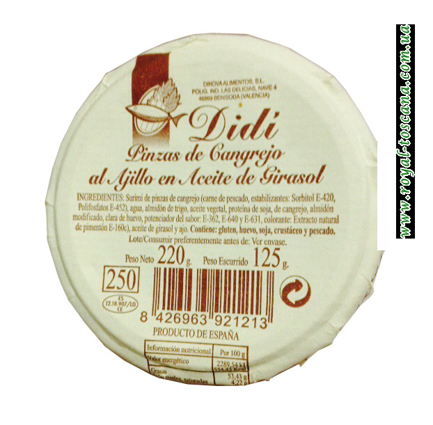 Клешни краба Didi Pinzas de Gangrejo al Ajillo en Aceite de Girasol