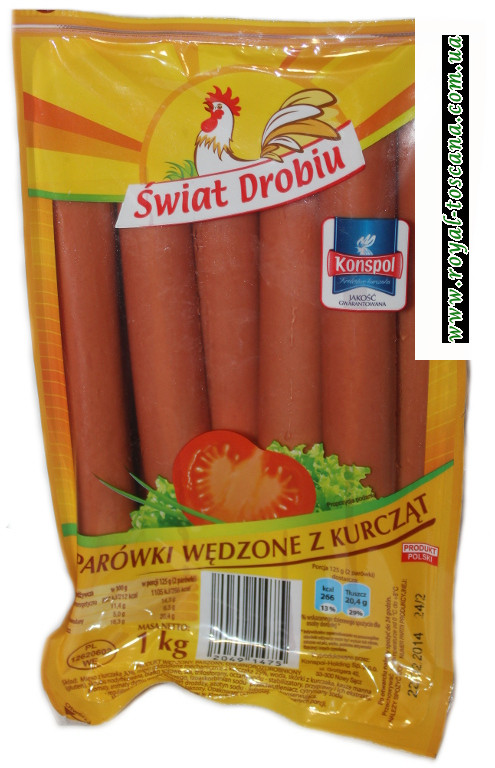 Очень популярные сосиски как Польше, так и за рубежом. В производстве используют только свежее куриное и натуральные компоненты