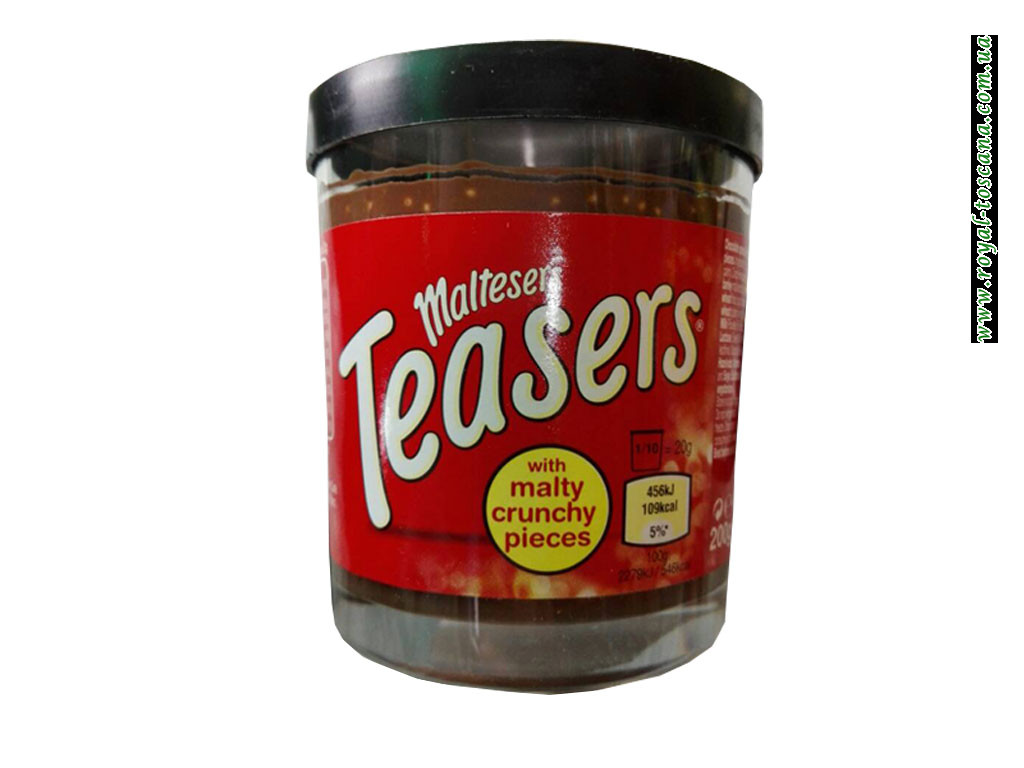 Maltesers Teasers – шоколадная паста с небольшими, диаметром не более двух миллиметров, шариков из воздушного, пористого медового печенья, удивительно хрустящих на зубах, придавая пасте необычный шарм. Первое испытание вкусовых рецепторов, наступает сразу после дегустации; мягкий, пастообразный шоколад, мощной ароматной волной заполняет рот, затем в «дело» вступает печенье с медом, скрашивая чуть пресным тестом приторные ощущения.