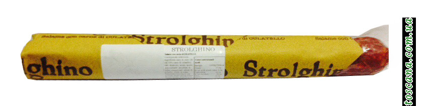 Салями Strolghino – деликатесная колбаса из Италии. Изготавливается из постных частей свиного окорока с приправами, без добавления вредных элементов. После приготовления салями должна созревать в течение нескольких дней, что бы получился нужный вкус. Эта колбаса станет идеальной закуской, её можно ставить на стол и подавать с красным вином, также она прекрасно подойдет для сэндвичей. Колбаса достаточно мягкая, на вкус она немного сладковатая. Салями Strolghino разнообразит мясную тарелку и подойдет для завтрака, обеда и ужина.