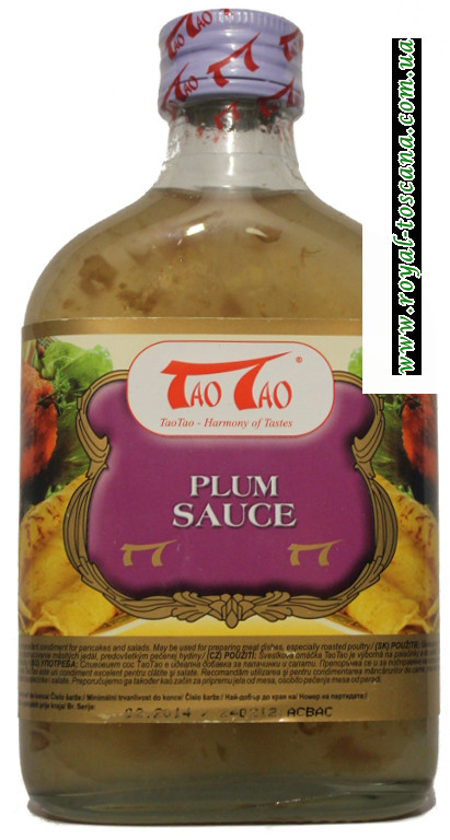 кисло-сладкий сливовый соус. В состав так же входят ананас, персик, абрикос, уксус, перец чили. Отлично сочетается с десертами, салатами, курицей и жареной уткой