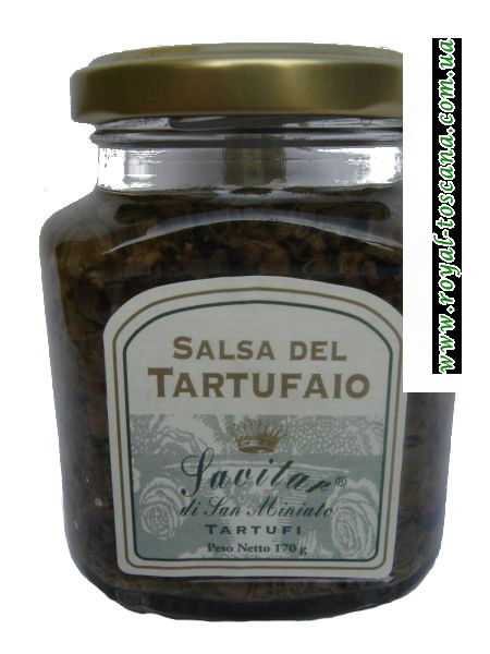 Соус с трюфелем содержит: грибы, растительное масло, оливковое масло, маслины, летние трюфели 2,8% (Tuber aestivum Vitt), каперсы, анчоусы, соль, зелень, сахар, натуральные травы, специи а также сельдерей и моллюски.