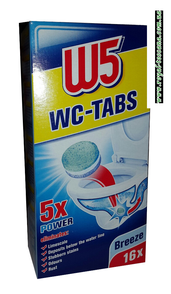 Таблетки для прочистки сливных труб унитаза W5 WC-TABS, 16x25 г