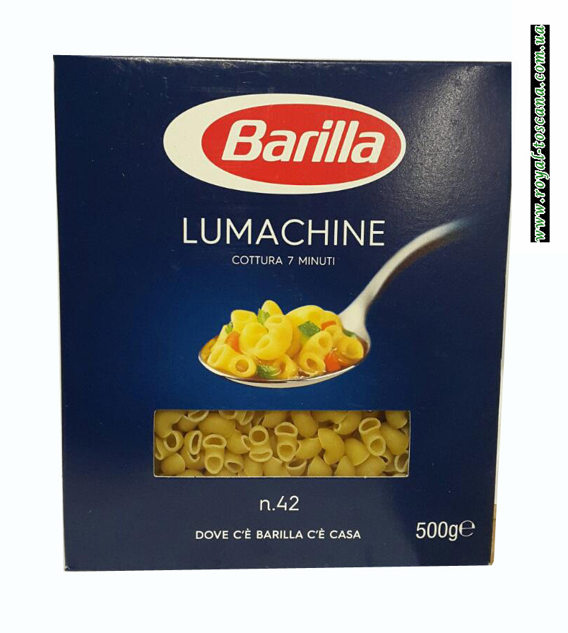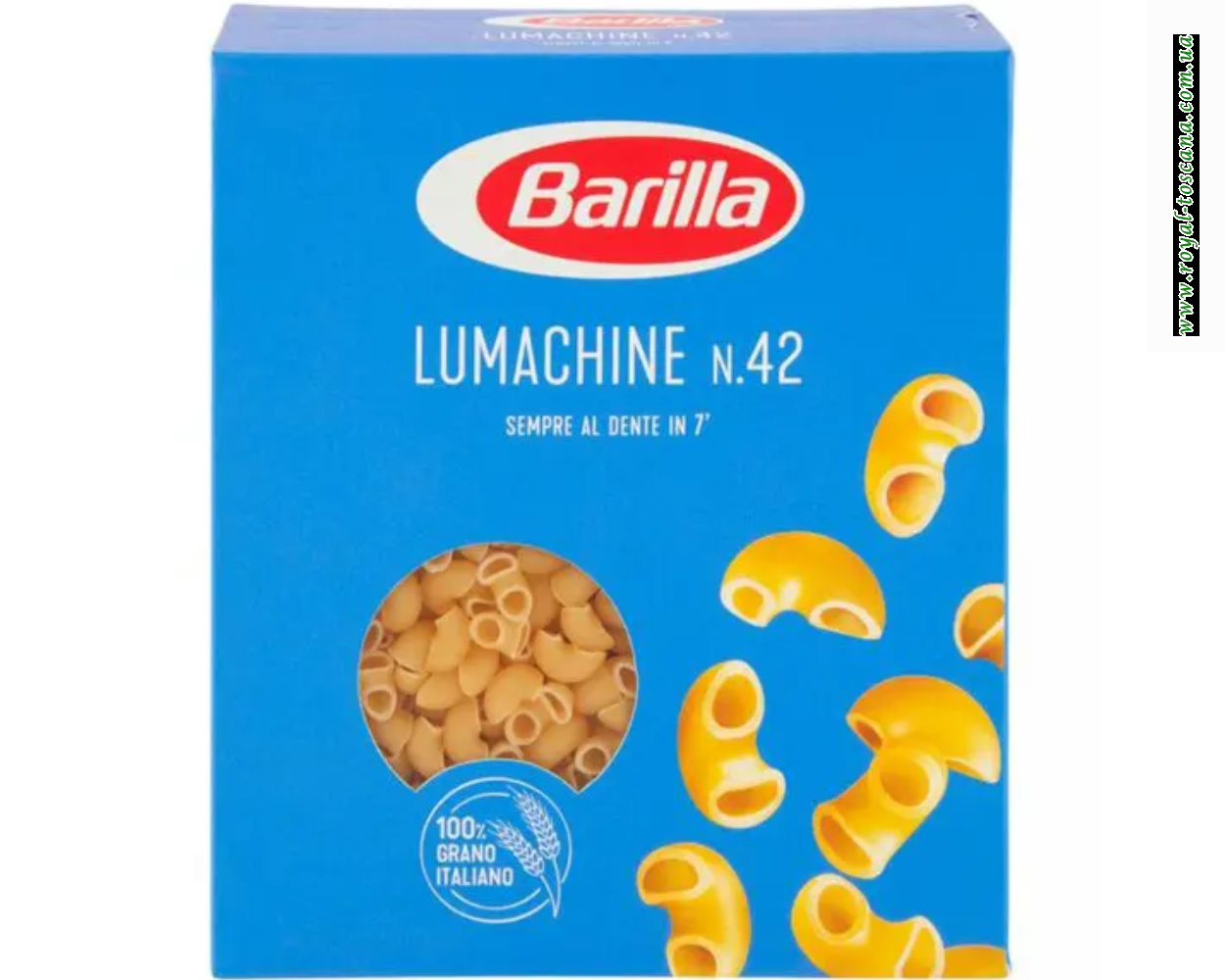 Макароны Barilla Lumachin обладают необычной формой, похожей на небольшую улитку. Итальянские макароны Barilla Lumachine изготовлены из твердых сортов пшеницы. По традиции, в провинциальной Италии, эти макароны подают с соусом к блюдам мяса или форели, а также прекрасно раскрывают свой вкус в разнообразных супах.