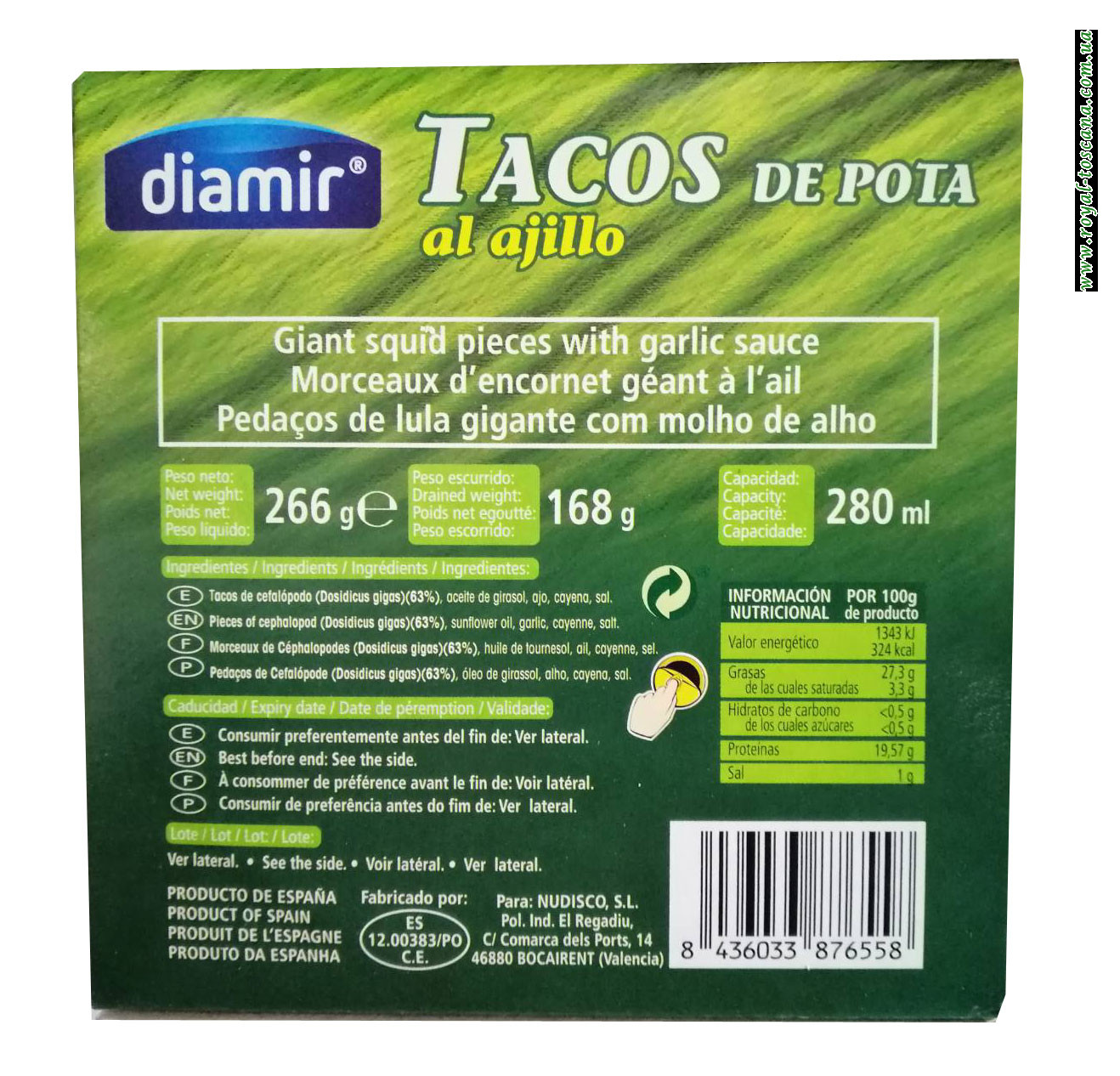 Осьминог с чесноком Diamir Tacos De Pota, 266 г.