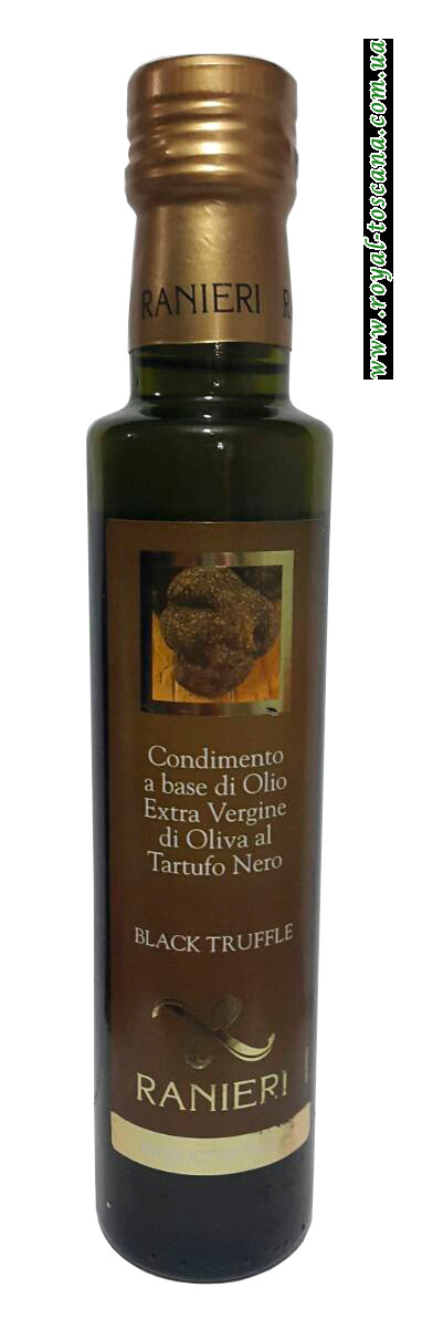 Итальянский продукт настоящих гурманов Ranieri Black Truffle. Экологически чистое оливковое масло первого отжима с черными трюфелями как иначе его иногда называют, трюфельное масло. Это масло представляет собой смесь утонченности, что дает блюдам незабываемый аромат и вкус. Прекрасно подойдет как заправка к салату. Буквально несколько капель Ranieri Black Truffle будет достаточно для того, чтобы Ваше блюдо приобрело аромат черных трюфелей.