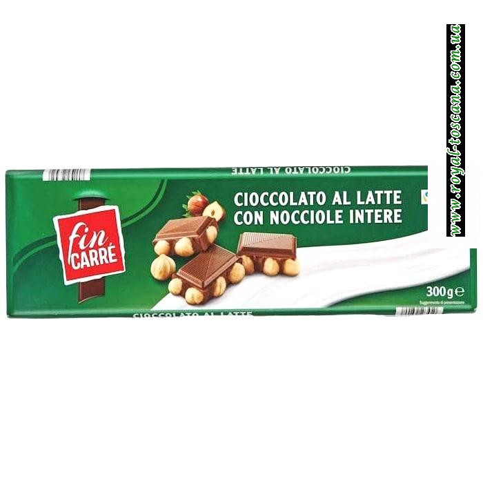 Молочний шоколад Fin Carre Cioccolato al latte con nocciole intere - незрівнянний шоколад з Італії з чудовим ароматом та чарівним смаком. Для любителів солодкого така шоколадка стане найкращими ласощами, адже какао у поєднанні з молоком та справжніми цілісними горіхами створюють повноцінну картину смаків.