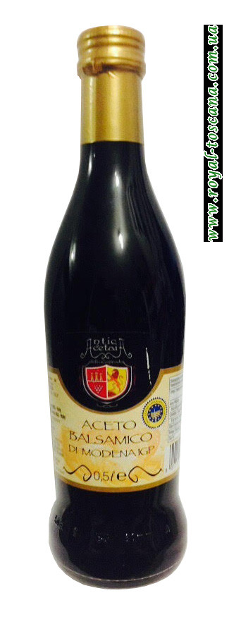 Бальзамический уксус имеет темный цвет, сладкий фруктовый аромат и густую консистенцию, приготовленный по традиционным, старинным рецептам, бальзамик обозначается маркой «Aceto Balsamico Tradizionale di Modena» (традиционный бальзамический уксус из Модены). Применяют для приготовлении супов, салатов, маринадов,а также десертов.
