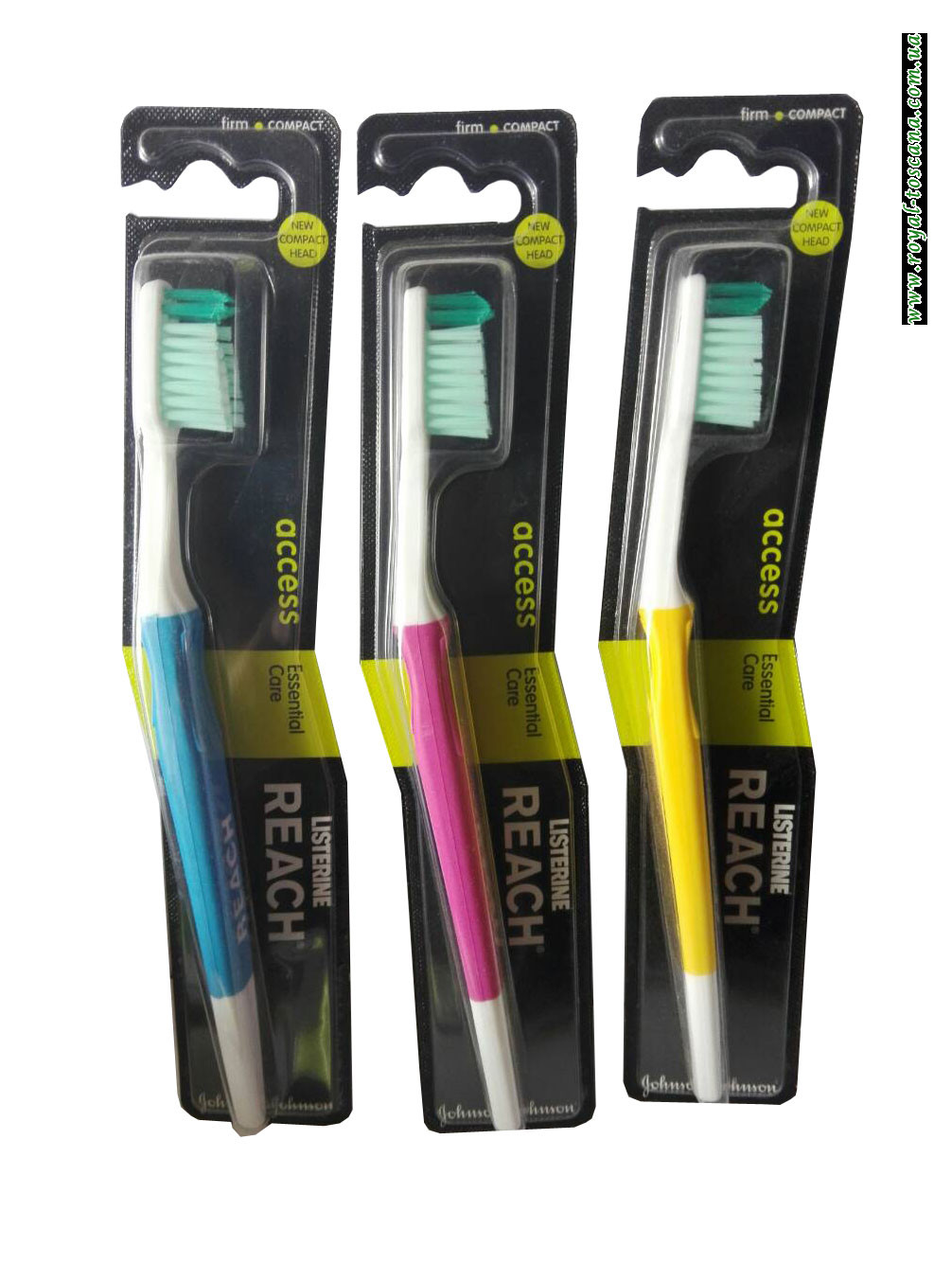 Зубная щетка REACH® Access - для большей доступности во время чистки: длинные верхние щетинки бережно чистят вдоль линии десен; шейка щетки расположена под углом для более легкой чистки труднодоступных мест; мягкие резиновые накладки на ручке позволяют ей не скользить в руке во время чистки.