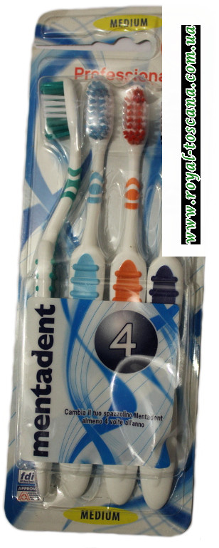 Отличная щетка, для качественной чистки зубов. Благодаря уникальной конструкции, щетка хорошо чистит между зубов. Жесткость щетки - средняя(medium). В комплекте 4 щетки